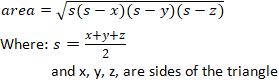 There are many equations for calculating the area of a triangle based on what information is available. As mentioned in the calculator above, please use the Triangle Calculator for further details and equations for calculating the area of a triangle, as well as determining the sides of a triangle using whatever information is available. Briefly, the equation used in the calculator provided above is known as Heron's formula (sometimes called Hero's formula), referring to the Hero of Alexandria, a Greek mathematician and engineer considered by some to be the greatest experimenter of ancient times. The formula is as follows:
